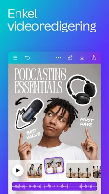 Från stillbilder till fängslande rörlig bild, revolutionerar Canva ditt videoberättande. Producera videor i studioklass med ett rikt bibliotek av ljudspår och intuitiva AI-redigeringsverktyg. Lägg till dynamiska animationer och mjuka övergångar som väcker dina bilder till liv med ett enda tryck. Skapa komplexa ljudlandskap genom att stapla musik, ljudeffekter och voiceovers, och synkronisera dina klipp magiskt med Beat Sync. Designa och dela engagerande inlägg, stories och reels för Instagram, TikTok, Facebook, LinkedIn och Snapchat, allt optimerat för varje plattform. Canvas flexibla layouter och specialiserade verktyg gör det enklare än någonsin att förmedla din unika röst.