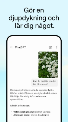 ChatGPT förvandlar hur du interagerar med teknik genom mångsidiga funktioner. Använd det intuitiva Röstläget – tryck på hörlursikonen för att tala fritt under dina resor, få hjälp med att formulera godnattsagor för familjen, eller lösa kniviga diskussioner vid middagsbordet. Utnyttja även Fotouppladdning för att enkelt transkribera ett handskrivet recept eller för att ställa detaljerade frågor om en historisk sevärdhet som fångar ditt intresse. Dessa interaktionsmöjligheter gör kunskap och kreativitet omedelbart tillgängligt.