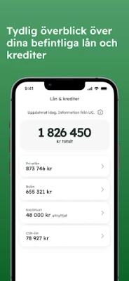 Få total kontroll över din privatekonomi. Se ditt UC kreditbetyg, få tips för att förbättra det och en översikt av dina lån. Information hämtas direkt från UC, uppdateras dagligen, helt kostnadsfritt och utan kreditupplysning.