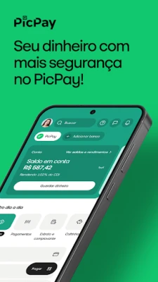 PicPay är mer än bara ett digitalt konto; det är en helhetslösning för din ekonomiska framtid. Utöver effektiva överföringar och flexibla kreditalternativ, kan du investera dina pengar på ett säkert och lättillgängligt sätt direkt i appen, samt betala räkningar i upp till 36 delbetalningar med ditt kreditkort. Dra nytta av vårt cashback-program som ger dig pengar tillbaka på dina inköp. Vi erbjuder även säkra konton för minderåriga, vilket ger unga en tidig start på sin ekonomiska resa med trygghet och självständighet. Med vårt "Säkert Läge" garanteras dessutom extra skydd för dina pengar och transaktioner, så du alltid känner dig trygg. PicPay ger dig full kontroll och makten att forma din egen ekonomiska berättelse.