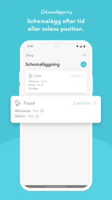 Effektivisera din vardag med intelligent schemaläggning. Plejd möjliggör automatisering av dina enheter för att perfekt anpassa sig efter din dygnsrytm och dina önskemål. Ställ in belysningen att gradvis tändas med soluppgången eller dimmas ned vid solnedgången, eller schemalägg exakta tidpunkter för att tända och släcka valfria produkter. Dessa smarta timers och återkommande scheman konfigureras intuitivt i appen, vilket sparar dig tid och energi samtidigt som det bidrar till en mer bekväm och responsiv hemmiljö.