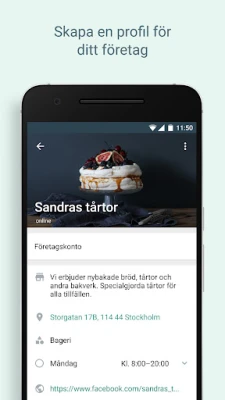 Skapa starka kundrelationer och stärk ditt varumärke med en professionell företagsprofil som genomsyrar trovärdighet. Ge dina kunder en flexibel supportupplevelse som stärker lojaliteten på lång sikt. Med WhatsApp Business kan du dessutom boosta din försäljning genom att visa upp en detaljerad produktkatalog direkt i appen, vilket gör det enkelt för kunder att utforska dina varor och lägga beställningar. Driv riktad marknadsföring, öka din synlighet och konvertera intresse till affärer genom att skapa annonser som direkt leder kunder till en chatt med dig. För att ytterligare förstärka din autenticitet och trovärdighet kan du välja att prenumerera på Meta Verified, vilket ger extra säkerhet och en bekräftad närvaro.